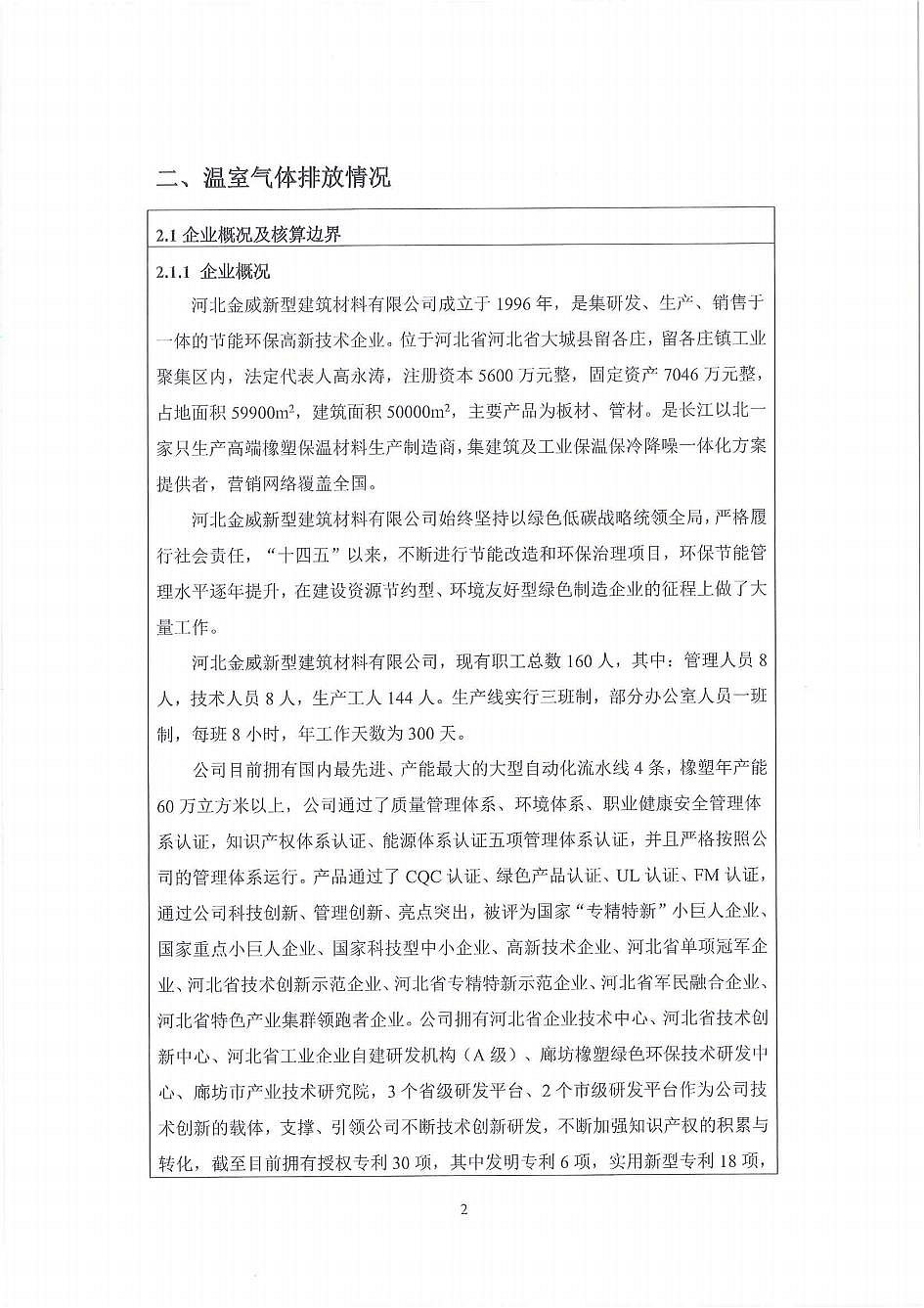 河北金威新型建筑材料有限公司溫室氣體排放報(bào)告