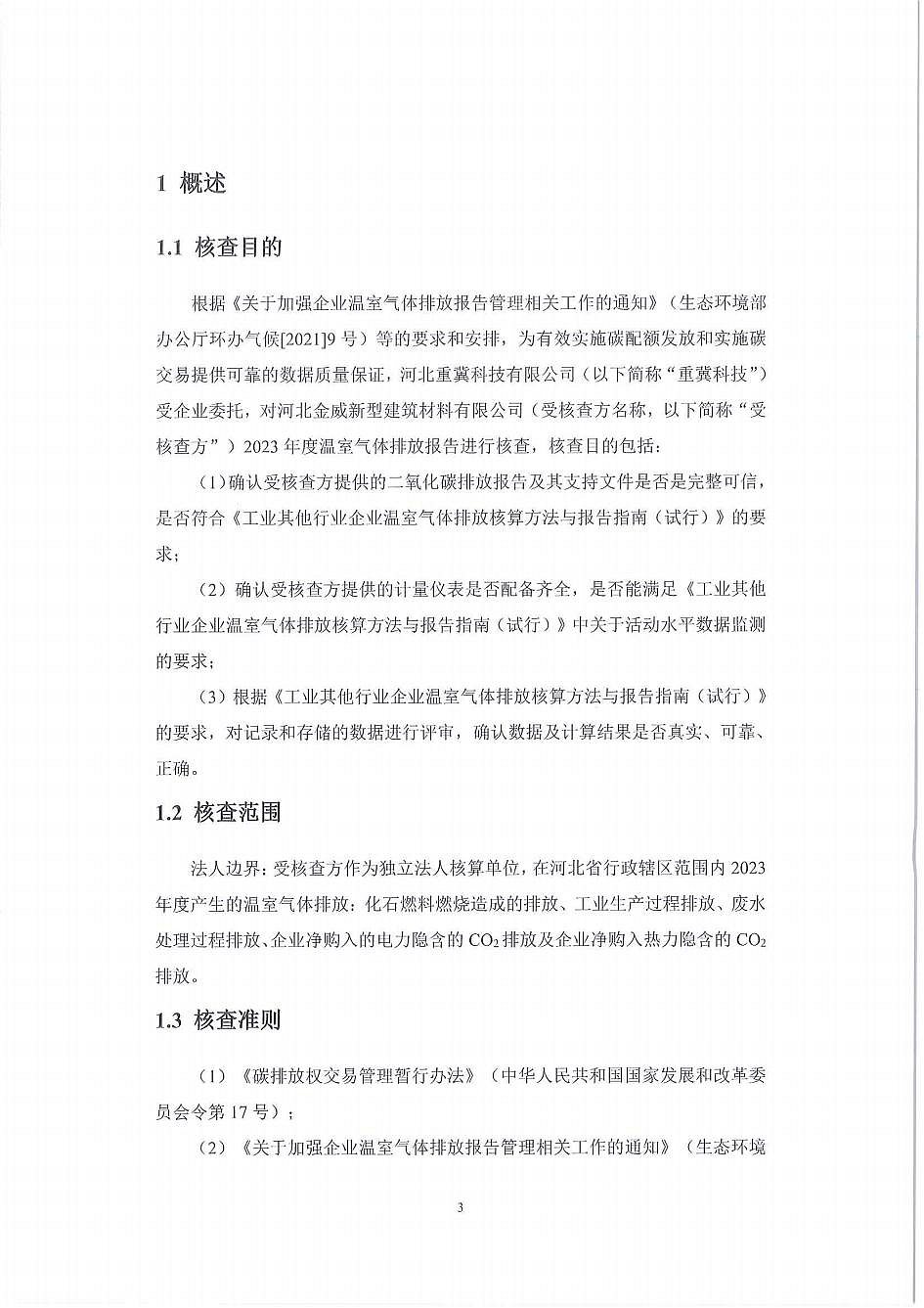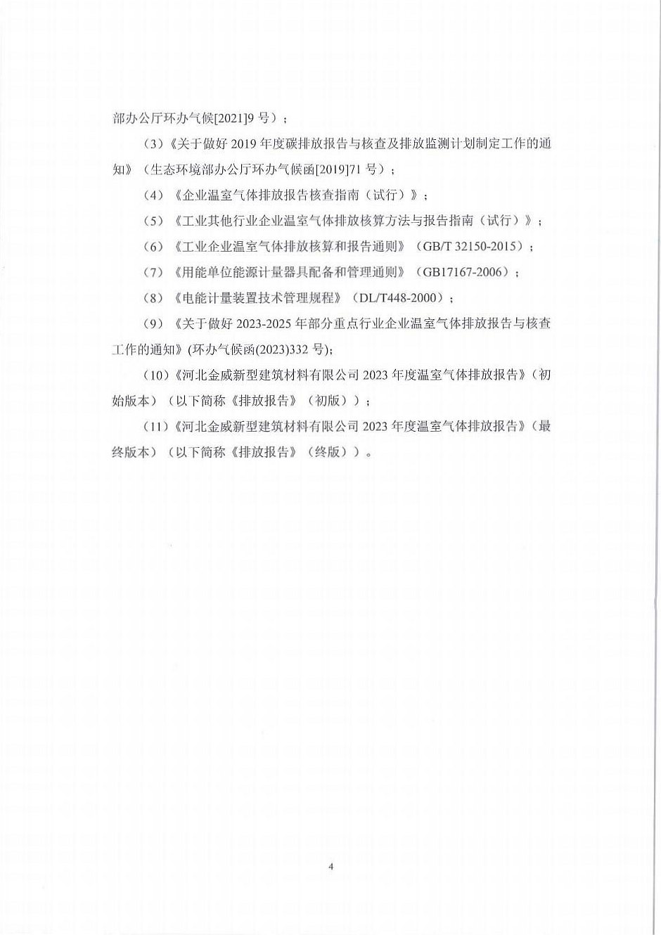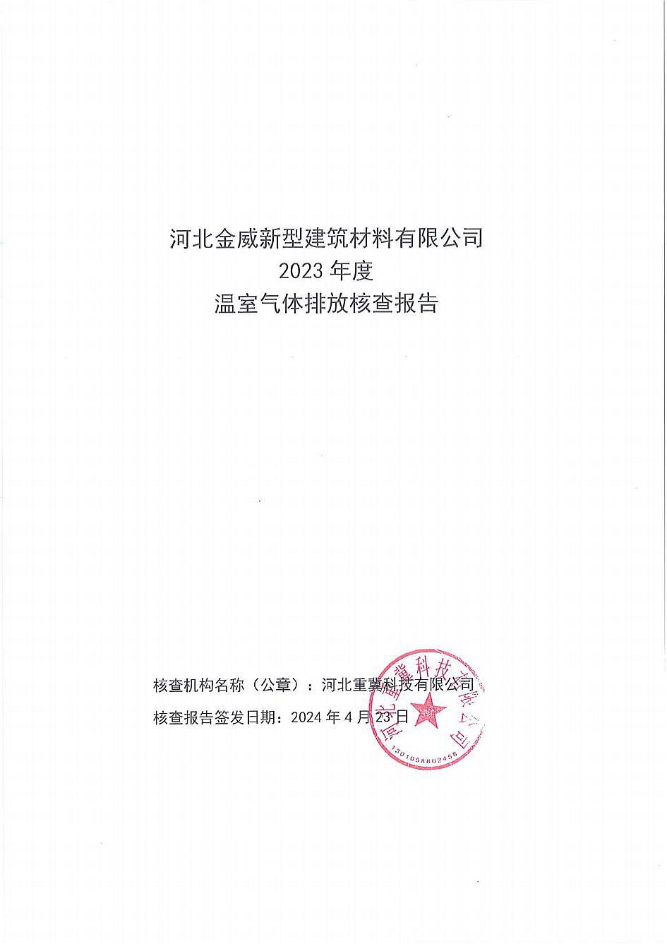 河北金威新型建筑材料有限公司2023年度溫室氣體排放核查報(bào)告