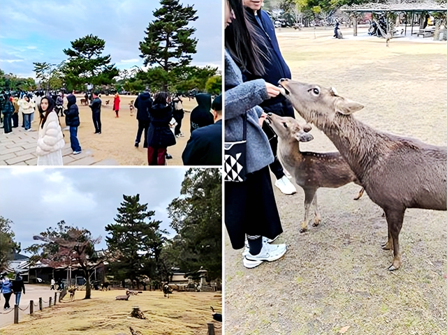 奈良公園,一座有著深厚文化底蘊和歷史的打卡點,這片寧靜的綠洲中,棲息著數(shù)以千計自由漫步的鹿群,鹿被尊為神明的使者,在古代,被視為神圣的存在。大家與鹿群近距離接觸,一路被小鹿追逐、圍繞,一起嬉戲、互動,仿佛一切煩惱都在此刻煙消云散。