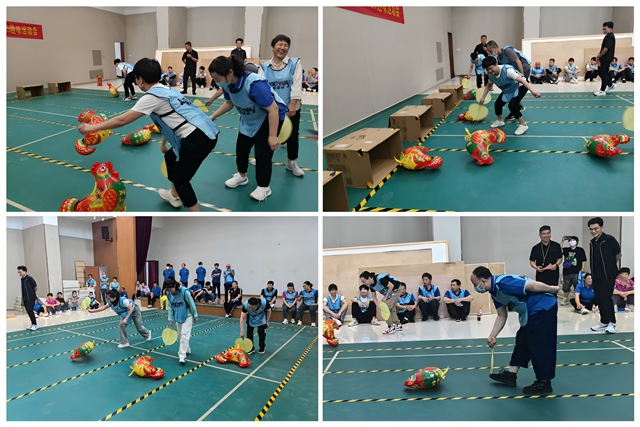 個人賽環(huán)節(jié)的“摸石頭過河”“扯尾巴”“趕雞入籠”項目趣味十足,選手們手持泡沫磚“摸石過河”,在平衡與速度的挑戰(zhàn)中或穩(wěn)健沖刺、或踉蹌惹笑。