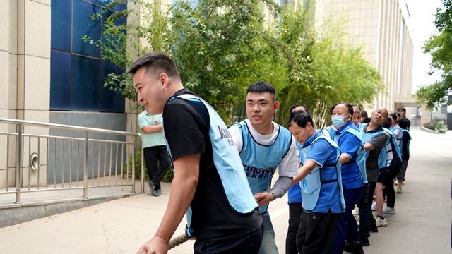 哨聲一響,拔河賽場瞬間沸騰!各隊緊握長繩全力后仰,加油聲震天響,雙方為團隊榮譽拼盡全力,斗志昂揚,勠力同心,完美詮釋了“心齊方能力聚”的團隊精神。