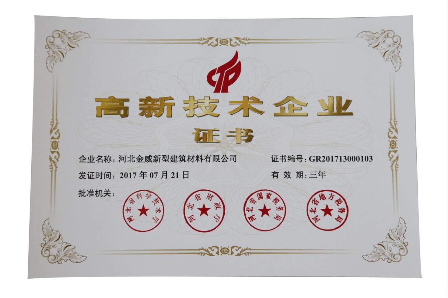 2017年7月21日,我公司成功成為高新技術(shù)企業(yè)。