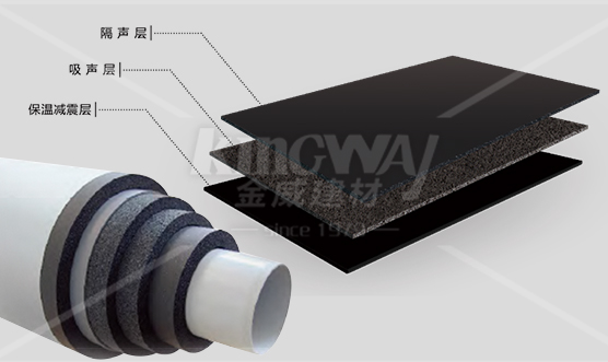 金威保溫隔聲系統(tǒng)是針對高噪聲管道設(shè)計的隔聲降噪及絕熱二合一的專業(yè)系統(tǒng),由金威橡塑、靜唯吸音板、靜唯隔聲墊和專用外呼層材料多層復(fù)合的三明治結(jié)構(gòu),可針對不同降噪要求進(jìn)行結(jié)構(gòu)選型設(shè)計。