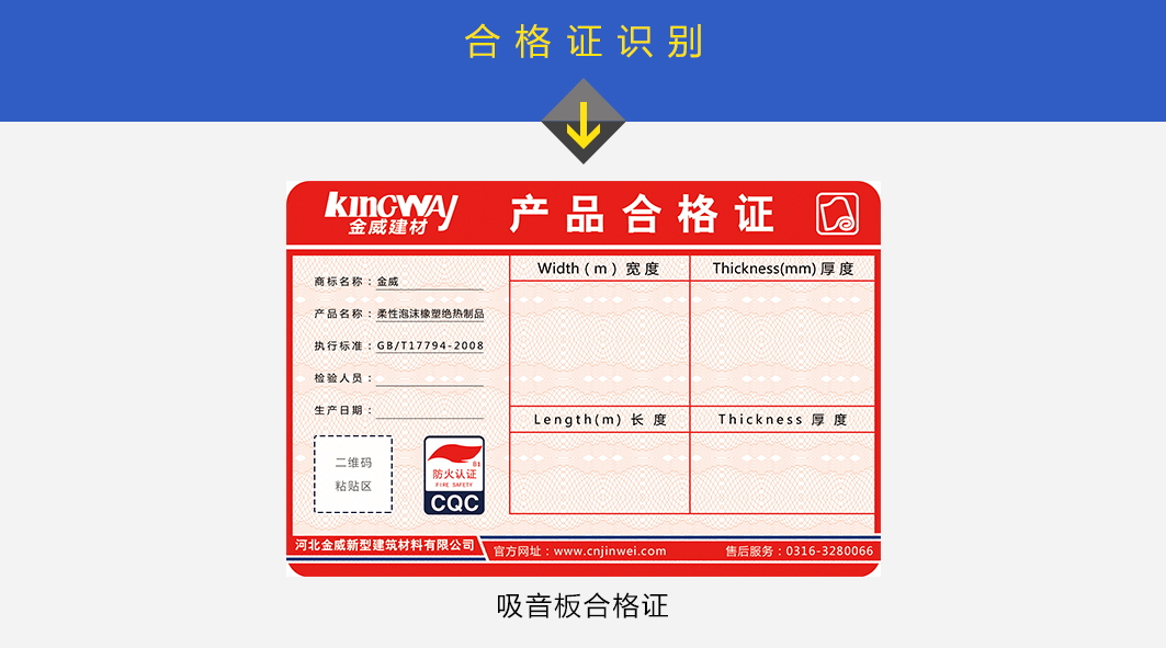 一、"金威"牌吸音降噪系列產(chǎn)品每件包裝上都貼有本公司統(tǒng)一打印的合格證,發(fā)貨時并打印銷售人員二維碼,發(fā)貨日期與檢驗人員編號。